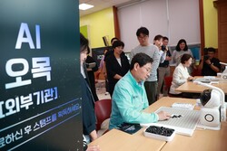이상일 시장은 20여 개의 부스를 둘러보며 관계자들을 격려하고, AI 오목, ICT 러닝, AI 포토 부스, 모션 챌린지 등 다양한 프로그램을 직접 체험하며 축제에 참석한 청소년들과 소통했다.