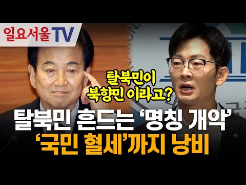 박충권 국민의힘 의원과 북한민주화위원회, 법과 나, 자유탈북여성회, 탈북군인모임, 해피하나원드, 탈북미술작가협회, 북한인민해방전선, 통일하나협회가 22일 국회에서 기자회견을 열어 탈북민 명칭 변경 관련해 발언하고 있다.