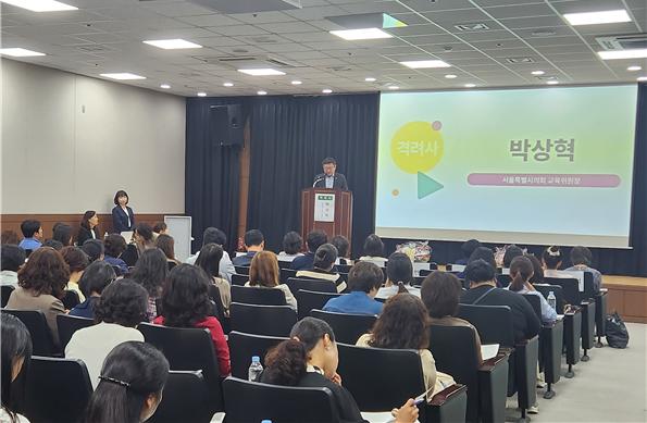 [일요서울] 서울특별시의회 박상혁 교육위원장(서초 제1선거구, 국민의힘)은 29일서울시립미술관 대강당에서 열린 '2025 서울시 장애아통합어린이집 사례발표회'에 참석해 장애아통합 보육의 현장 사례를 듣고 함께 바람직한 유보통합의 방향을 모색했다.