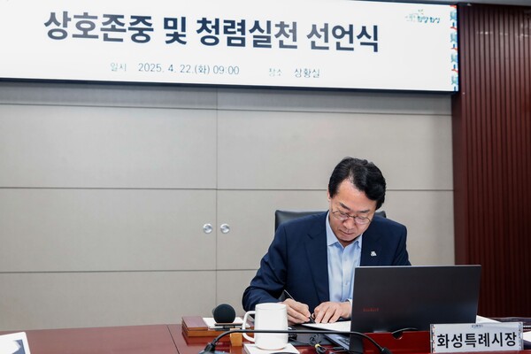 이와 함께, 정명근 시장은 “화성특례시는 앞으로도 국가 청렴도 향상에 기여하고 내년 4개 구청 신설을 앞두고 행정수요가 증가하는 가운데서도 ‘시민에게 신뢰받는 청렴특례시’라는 비전을 실현하기 위해 더욱 노력하겠다”라고 강조했다.
