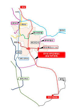 ‘중부권 광역급행철도(JTX)’ 노선은 ‘경강선 연장’ 구간을 포함하고 있어 대한민국 반도체산업 핵심거점이 될 처인구 이동·남사읍에 있는 ‘용인 첨단시스템반도체 클러스터 국가산업단지’를 통과한다.