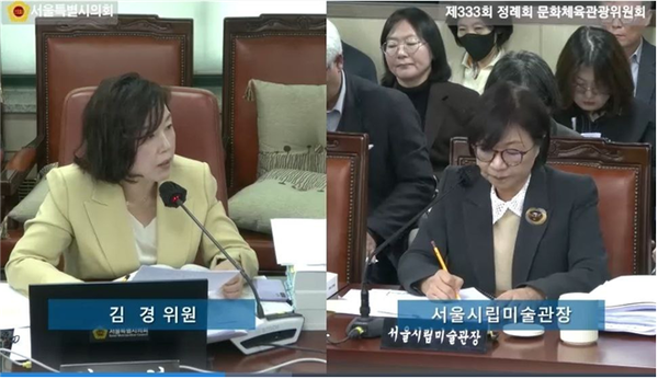 [일요서울] 서울시의회 문화체육관광위원회 김경 의원은 지난 6일 서울시의회 문화체육관광위원회에서 열린 서울시립미술관 행정사무감사에서 최은주 관장의 소장품 확충 성과를 높이 평가하며 “이제는 양적 성장을 넘어 질적 관리 체계를 강화할 시점”이라고 강조했다.