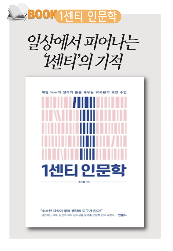 책 「1센티 인문학」은 인문학을 어렵고 추상적인 학문이 아니라, 생활 속에서 즐길 수 있는 ‘생각의 놀이’로 제시한다. 저자는 “매일 1센티의 생각을 쌓자”는 제안을 바탕으로, 우리 주변의 익숙한 장면을 낯선 시선으로 다시 바라본다.