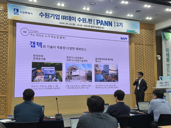 이산화탄소 포집 기술 특허 등을 기반으로 온실가스 저감 솔루션을 제공하는 ㈜갭텍은 지난해 9월 수원시가 마련한 기업IR데이 2기에 참여해 대상을 받아 투자자들에게 이름을 알리기 시작했다.