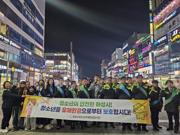 [일요서울|화성 강의석 기자] 화성특례시는 지난 13일 저녁 향남2지구 중앙광장 일대에서 화성서부경찰서, 화성민간기동자율방범대, 화성서부학부모폴리스와 함께 ‘유해환경 정화 민관 합동 캠페인’을 진행했다.